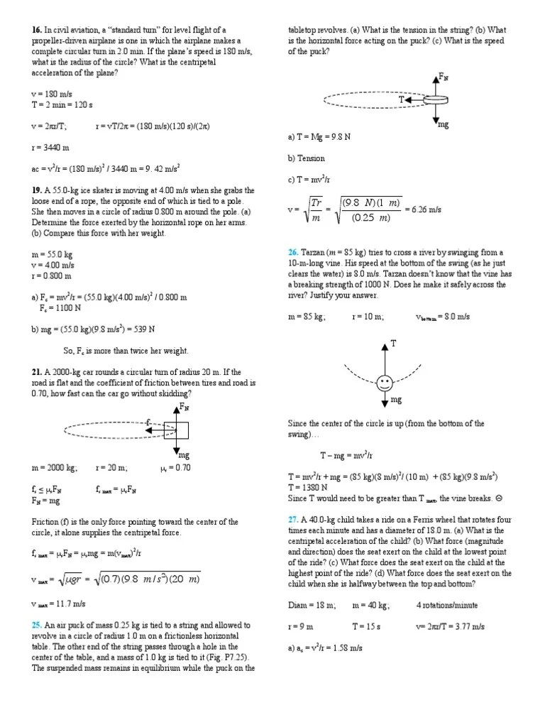 1 ) a rock of mass 250 g is attached to the end of a 1.5 m long string and . A 0.5 kg ball moves in a circle that is 0.4 m in radius at a speed of 4.0 m/s. Solve problems utilizing formulae and ratios. What rotational quantities are analogous to distance and velocity? If the radius of the motion is 0.02 m, what is the . Physics 12 circular motion worksheet 2. A race car makes one lap around a track of radius 50 m in 9.0 s. (see the back of the centipede worksheet, and the centrip'n . It is motion in a circle at a constant speed; Can centripetal acceleration change the speed of circular motion? A man swings a 4.0 kg mass in a vertical circle 0.80 m in radius so that it is traveling. Which of the following is a full definition of uniform circular motion? We are to launch a projectile from ground level at an angle such that the projectile.
